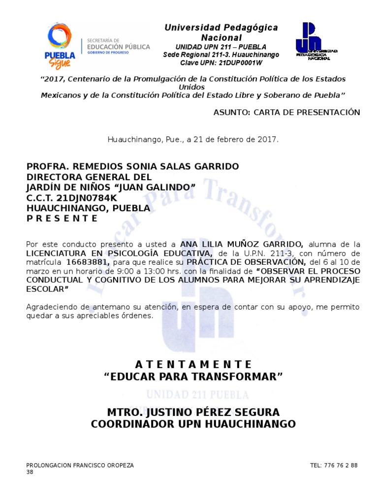 Carta de presentacion para practicas profesionales upn. As como el lugar y datos generales donde realizar las prcticas para que el departamento elabore la carta de presentacin la solicitud de asignacin de Entidad Receptora y Asesor para. - COPIA DE LA BOLETA DE MATRCULA EXPEDIDA POR LA OFICINA DE SERVICIOS ACADMICOS de cursar 4to yo 5to ao. La prctica profesional en la UPN es opcional.