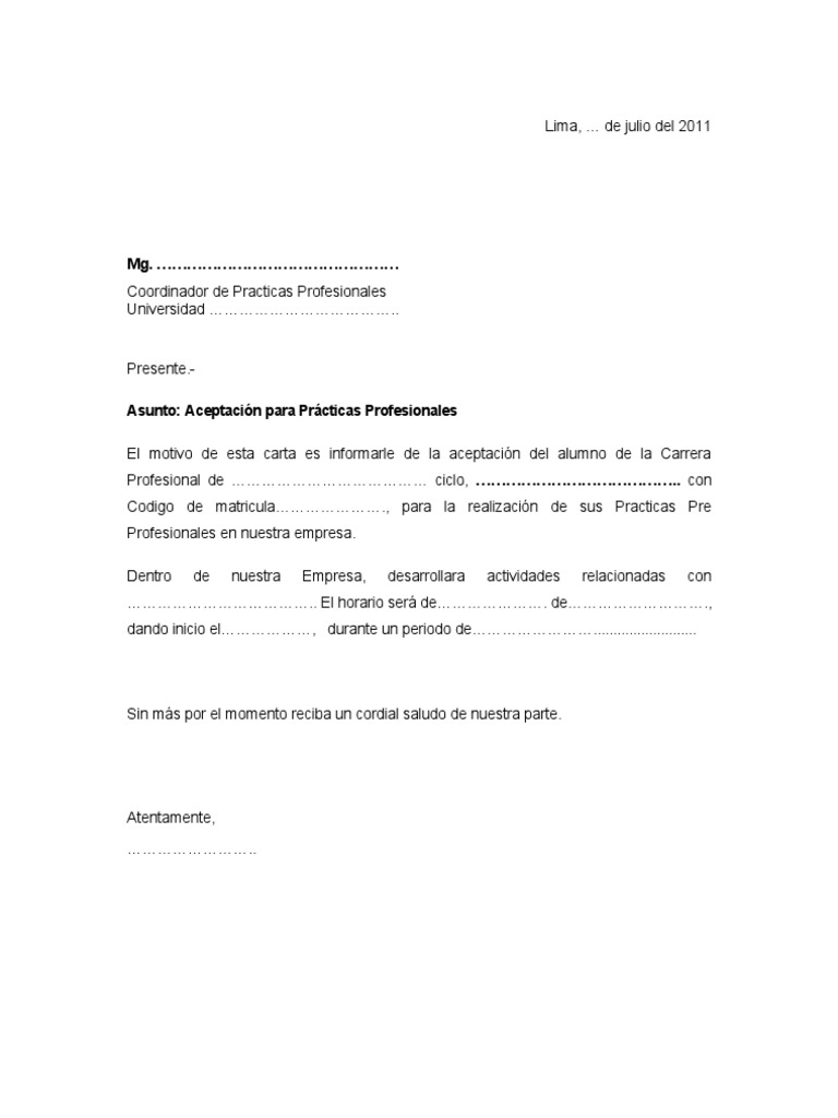 Modelo De Carta De Aceptacion Para Practicas Pre Profesionales Thomas Rivera Ejemplo De Carta