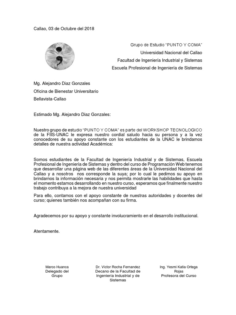 Carta de presentacion unac. Es muy importante empezar la carta de una manera correcta y que el reclutador vea que tu documento est dirigido a l. La carta de presentacin justamente deber dar cuenta de los diplomas que posee el postulante las experiencias laborales que sern debidamente justificadas y al igual que en todas las cartas de presentacin el candidato deber expresar sus motivaciones para el cargo y las razones para ocuparlo. En su discurso puso en valor el Acuerdo San Juan la relacin con el Gobierno nacional la obra pblica y pidi construir un triunfo en las prximas elecciones para que sea una carta de presentacin de la provincia de San Juan.