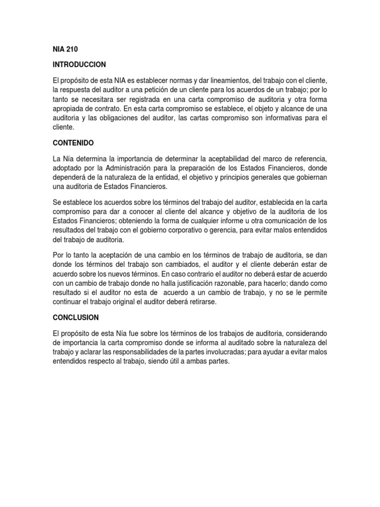 Carta De Compromiso De Auditoria Nia 210 Ejemplo Modelo De Informe